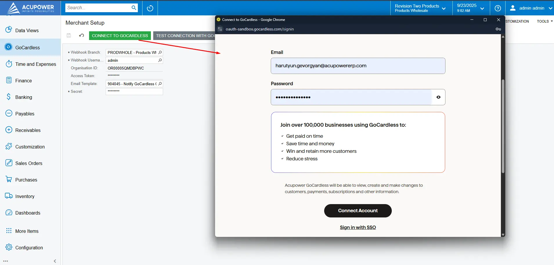 Suppose your business uses GoCardless to collect payments and Acumatica ERP to manage accounting. In that case, this integration (developed by AcuPower, a Gold Certified Acumatica Partner) lets you manage both in one place.